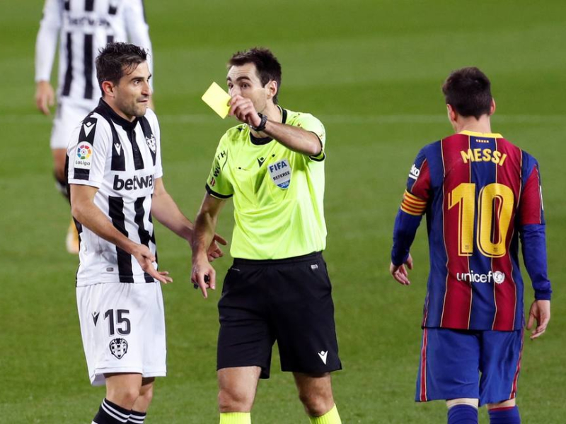 41'. Agarró Vukcevic a Messi cuando enfilaba hacia el área del Levante. Primera amarilla del partido para el montenegrino. Otra oportunidad para Messi, que busca el lanzamiento por alto. Atrapa sin problemas Aitor Fernández.