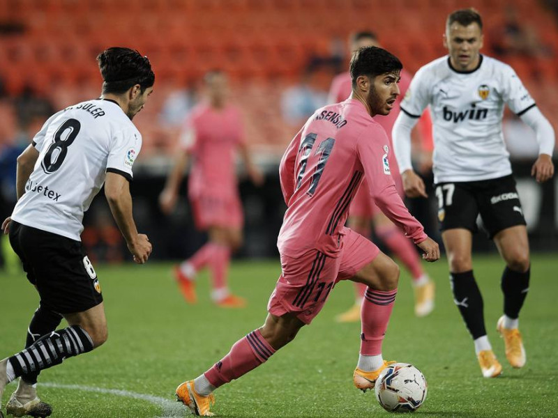 9'. Le pega Marco Asensio desde la frontal demasiado alto. Está calentando Mariano porque Benzema cojea un poco.