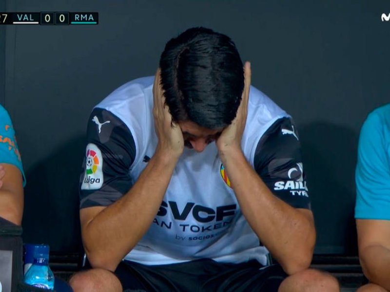 14'. Se tira al suelo lesionado Carlos Soler. No puede seguir el hoy capitán del Valencia que va a tener que ser sustituido. Va a entrar en su lugar Yunus Musah en la banda derecha. Mala suerte para el canterano.