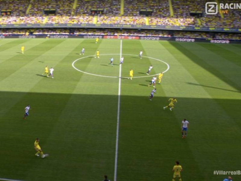 EMPIEZAAAA EL PARTIDO. Pone el balón en juego el Villarreal que inicia el ataque desde la defensa.