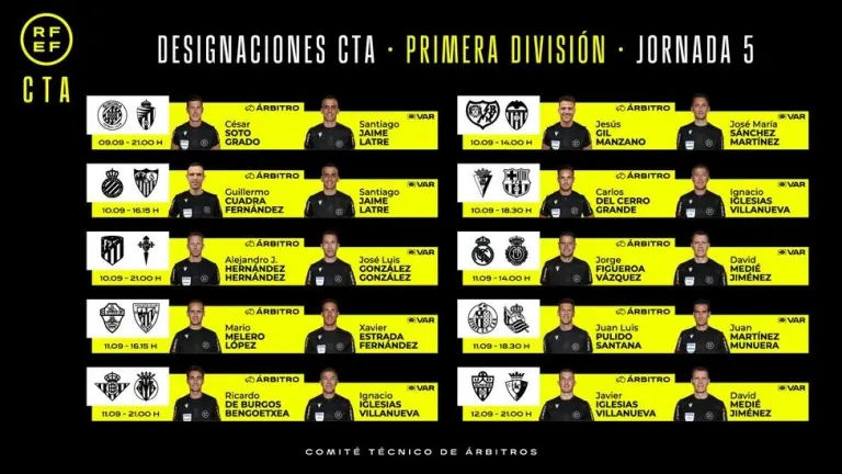 Estos son los árbitros designados para la 5ª jornada de LaLiga Santander