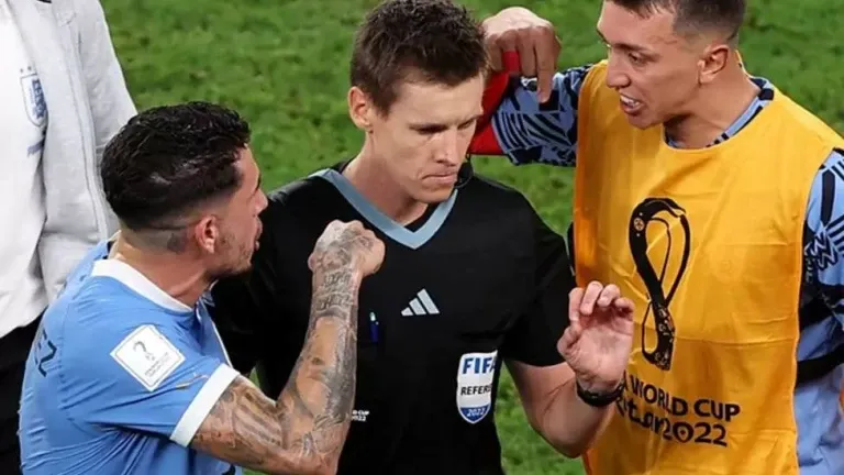 Al final del choque mundialista, tras el cual Uruguay quedó eliminada de la cita pese a imponerse 2-0, los implicados participaron en una serie de protestas contra los integrantes del cuerpo arbitral, encabezado por el alemán Daniel Siebert, y representantes de la FIFA.