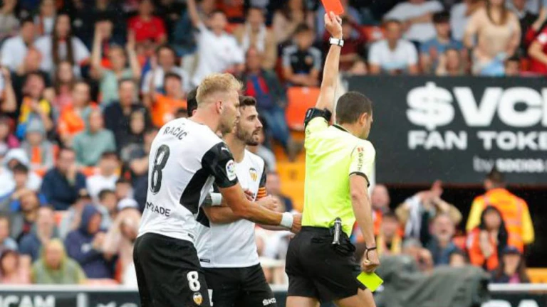 Gayá fue expulsado con roja directa en el derbi contra el Levante por una acción con Jorge Miramón y le impone esos dos encuentros en aplicación del artículo 123.2.