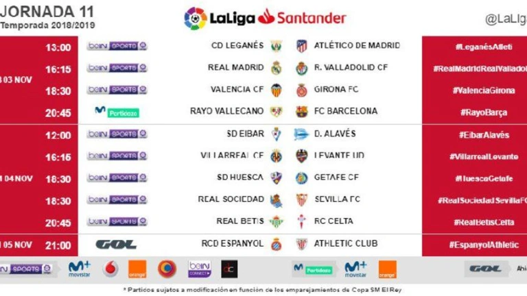 Horarios de la 11ª jornada de LaLiga