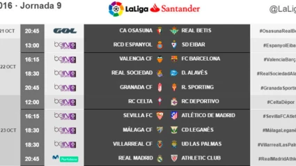 Horarios de la 9ª jornada de LaLiga Santander