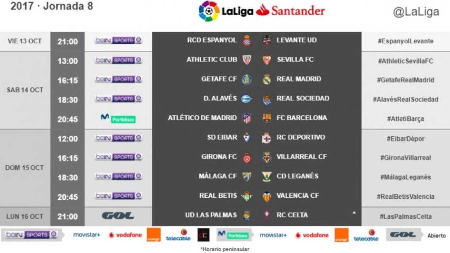 Horarios de la 8ª jornada de LaLiga Santander