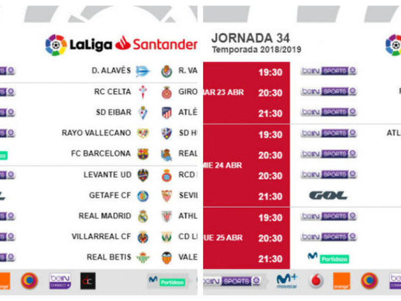 Horarios de las jornadas 33 y 34 de LaLiga Santander