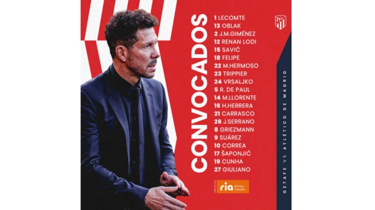 Lista de convocados del Atlético de Madrid contra el Getafe