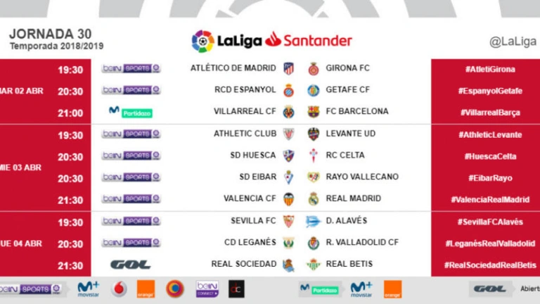 Horarios de la 30ª jornada de LaLiga Santander: