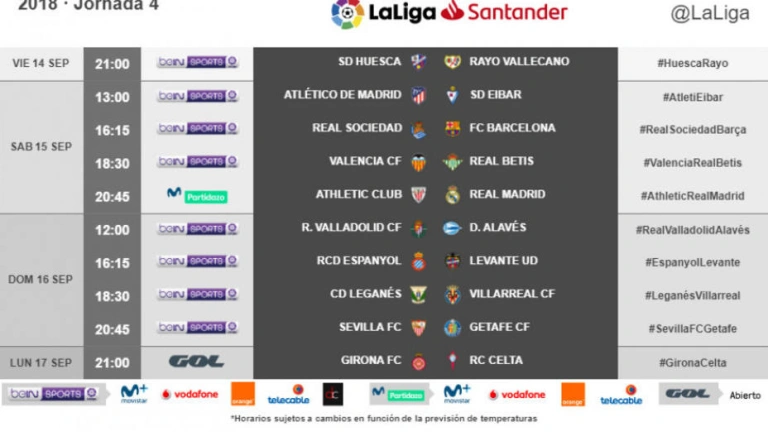 LaLiga Santander anuncia los horarios de la cuarta jornada