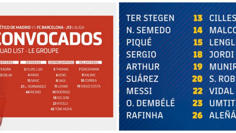 Convocatorias Atlético y Barcelona