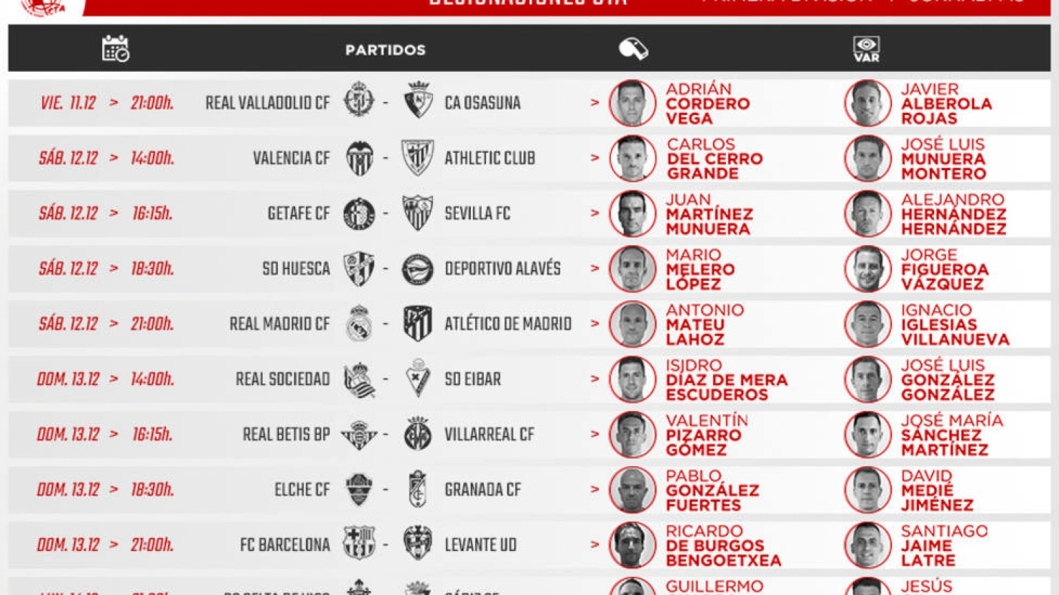 Mateu será el árbitros del derbi madrileño el próximo sábado a las 21:00 horas, con Iglesias Villanueva en el VAR.
