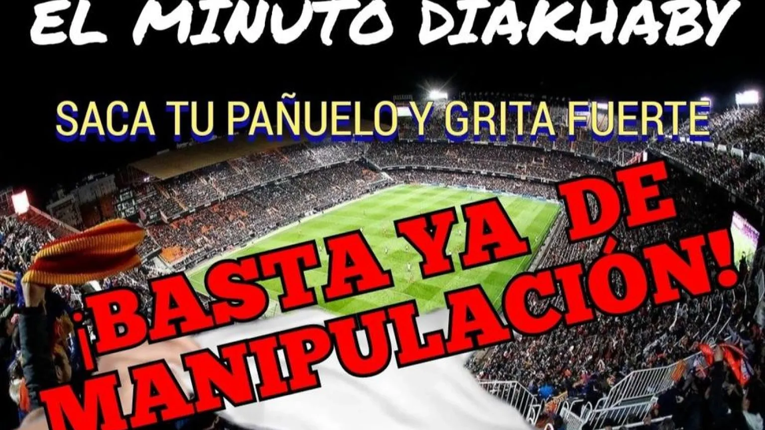 La Asociación de Pequeños Accionistas del Valencia CF (APAVCF) ha indicado este sábado que hará una pañolada de apoyo al defensa francoguineano Mouctar Diakhaby durante el minuto 12 del partido de los 'ches' contra el RCD Espanyol, correspondiente a la 37ª jornada de LaLiga Santander, en el Estadio de Mestalla.
