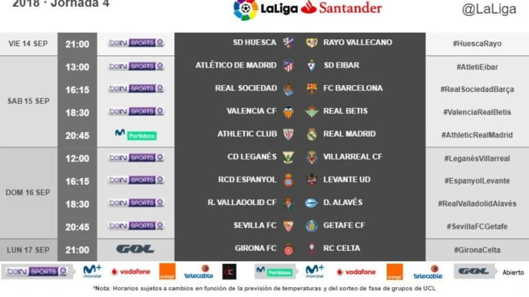 Modificación de horarios de la jornada 4 de LaLiga