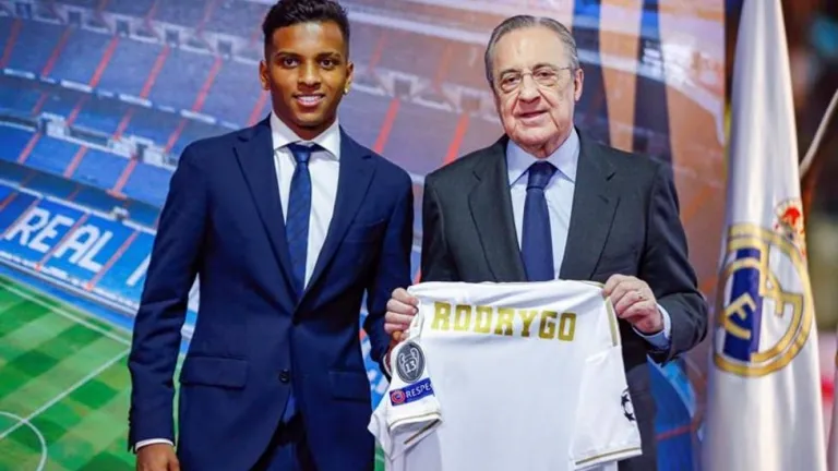 Rodrygo Goes ya ha posado como jugador del Real Madrid y firma hasta 2025. Tiene 18 años y cuesta 45 millones de euros.