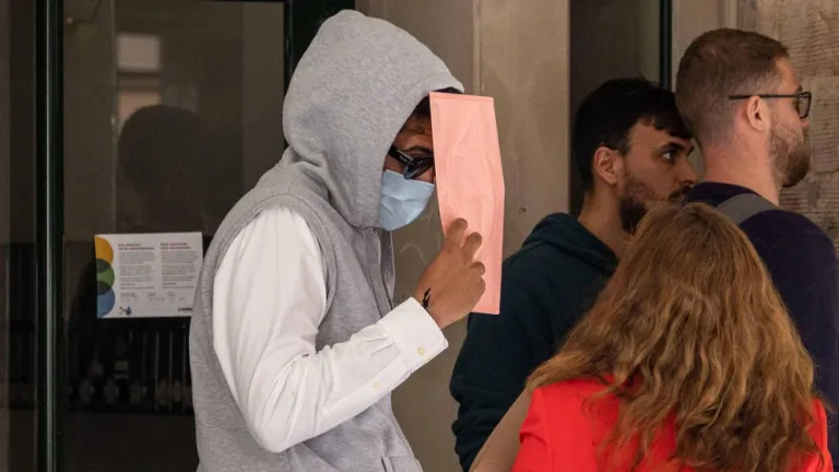 Al finalizar su declaración, escondido bajo una capucha gris y ocultando su rostro con una carpeta rosa, el investigado, acompañado de su abogada de oficio, ha bajado por las escaleras de emergencia y ha salido del edificio judicial por la puerta trasera para evitar a los medios que esperan a las puertas de los juzgados.