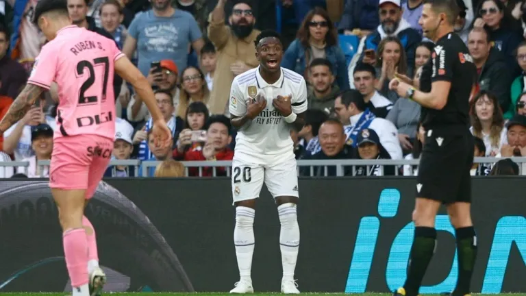 "Si el árbitro va a sacar una tarjeta cuando me han hecho 15 faltas en el 89', mejor que no la saque y tenemos más tiempo para jugar", ironizó Vinicius en el micro de Movistar.