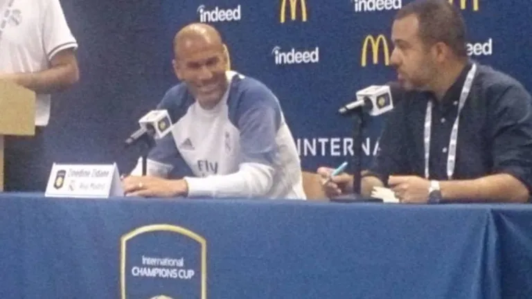 El técnico madridista compareció antes los medios de comunicación citados en Ann Arbor (Michigan). A la pregunta de nuestro enviado especial, Melchor Ruiz, Zidane manifestó su preocupación por Benzema de cara a la Supercopa de Europa.