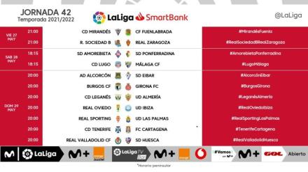LaLiga ha hecho oficial en la mañana de este domingo los nuevos horarios para la última jornada de LaLiga Smartbank donde está en juego el ascenso y el playoff.