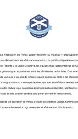 El encuentro entre Tenerife y Las Palmas está previsto el lunes 3 de enero a las 18h (hora insular) y las peñas del club tinerfeño han emitido un comunicado mostrando su malestar.