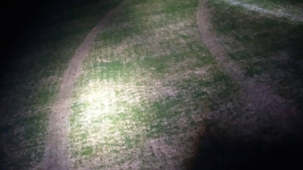 Los jóvenes hicieron trompos con una furgoneta que causaron daños al césped del Visit Mallorca Estadi la pasada madrugada.