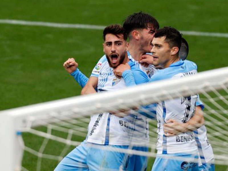 Los jugadores del Málaga celebran uno de los goles ante el Sabadell