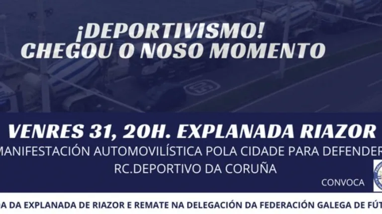 La agrupación de aficionados del Deportivo ha hecho un llamamiento a todos los deportivistas para que se unan a una manifestación que será en vehículos para expresar el "pleno rechazo a las agresiones sufridas desde hace una semana" por el club gallego por parte "de los organismos estatales del fútbol".