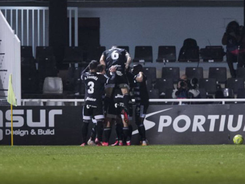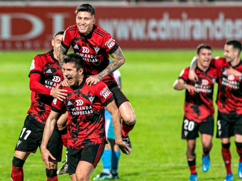 El Mirandés celebra el gol del triunfo ante el Málaga en LaLiga Smartbank (@LaLiga)