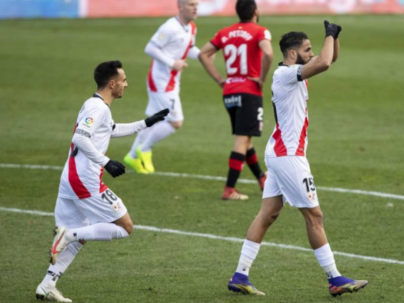 El Rayo Vallecano, con goles de Antoñín y Unai Medina en propia puerta, sumó un importante triunfo que le mantiene en la pelea por los puestos de promoción y frena al Logroñés, que se adelantó en el marcador y acabó jugando con diez por la expulsión del colombiano Leo Ruiz.