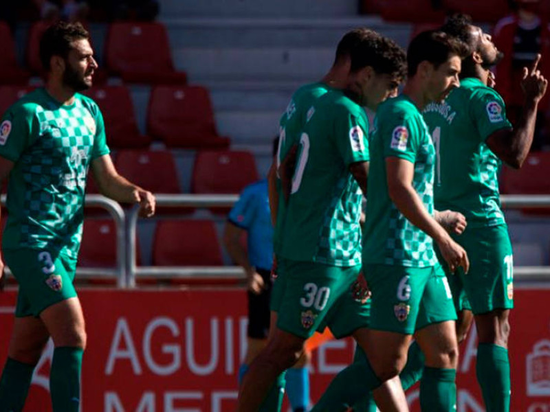 El Almería celebra uno de los cuatro goles que marcó en el estadio Anduva de Miranda | FOTO: LaLiga