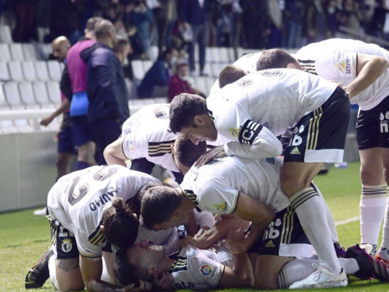 Los jugadores del Burgos celebran la victoria en El Plantío ante el Huesca | @LaLiga