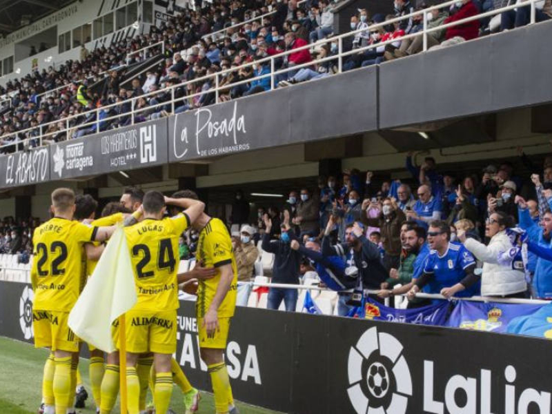 El Real Oviedo ha dado un paso importante en la pelea por llegar a la promoción de ascenso a Primera División al ganar por 1-2 al Fútbol Club Cartagena, que ve complicarse mucho ese objetivo, en un partido que los de casa han acabado con ocho jugadores por las expulsiones con tarjeta roja directa durante la segunda parte de Mohammed Dauda, Sergio Tejera y Gastón Silva, lo que obviamente ha sido clave.