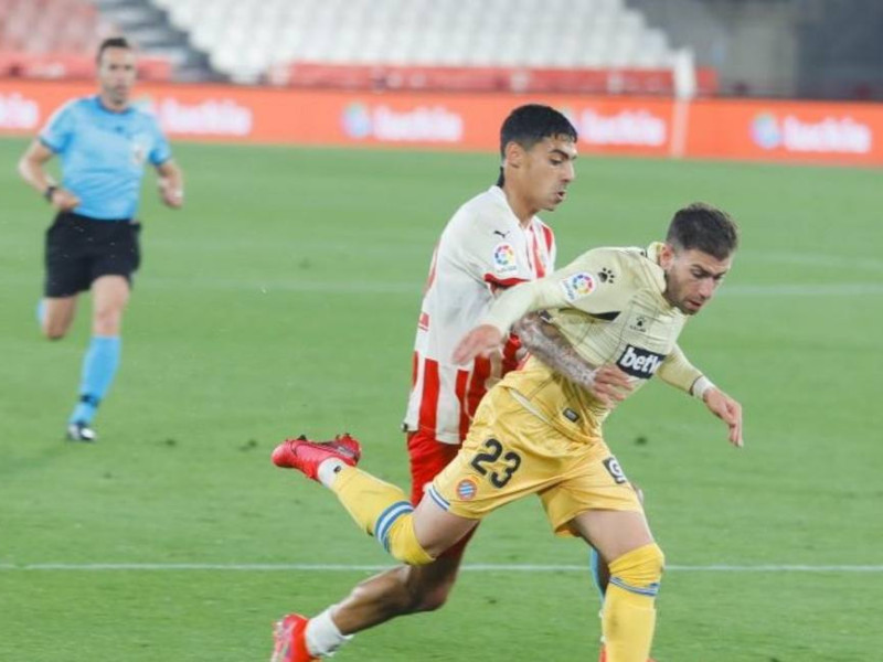 El Espanyol no pudo dejar casi sentenciado su retorno a LaLiga Santander después de no pasar del empate a un gol en el Estadio de los Juegos del Mediterráneo. Se veían las caras el primero y el tercer clasificados, separados por diez puntos, misma distancia que se quedó entre ambos, pero ya con un partido menos en la cuenta atrás de los 'pericos' de cara de volver a Primera.