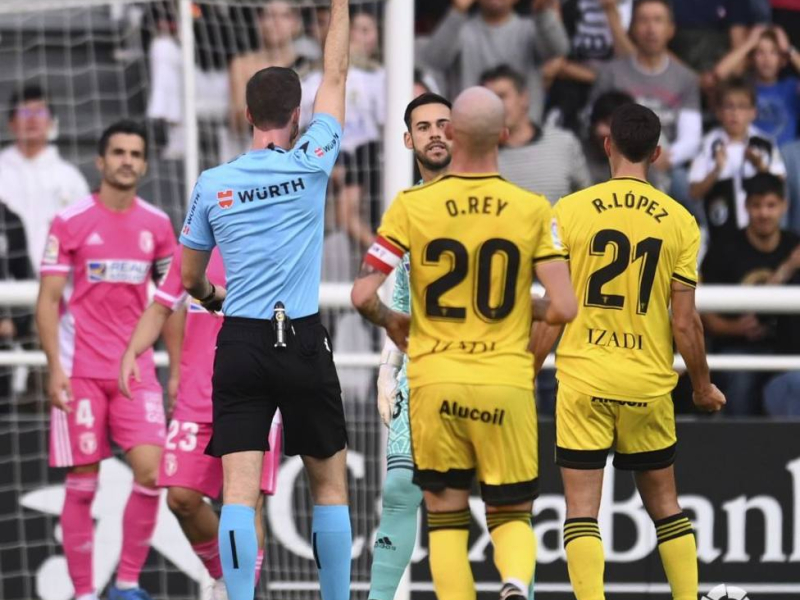 El portero del Burgos fue expulsado en el minuto 28 del partido ante el Mirandés y pone fin a su récord de imbatibilidad.