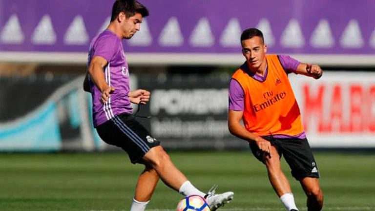 Morata, junto a Lucas Vázquez, en el entrenamiento de este viernes (FOTO - realmadrid.com)