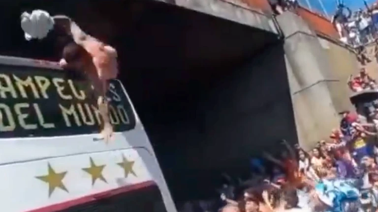 Un seguidor argentina se cae del autobús de la selección al intentar subirse