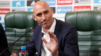 Luis Rubiales, presidente de la RFEF, anuncia ante los medios de comunicación la destitución de Julen Lopetegui como seleccionador a dos días del debut de España en el Mundial. "Las formas de los que han llevado la negociación no han sido honestas ni correctas”, señaló.