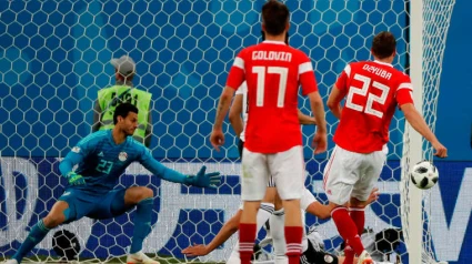 El rechace de un centro desde la derecha de Alexander Samedov que El Shenawy sacó de puños, le llegó a Golovin, cuyo centro tenso buscando a Dzyuba se encontró con Ahmed Fathi, que en su intento por despejar introdujo el balón en su propia portería.