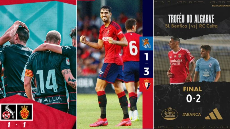 El Mallorca empata frente al Colonia; Osasuna vence 1-3 a la Real; Derrota del Celta contra el Benfica