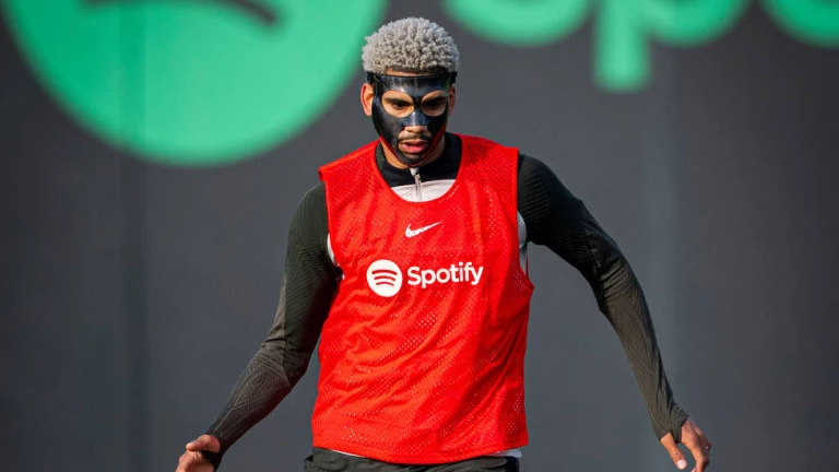 El conjunto azulgrana regresó hoy al trabajo tras disfrutar de dos día de descanso y Araujo apareció sobre el césped de la Ciudad Deportiva Joan Gamper con una máscara que recuerda a la que en su día lució el también central Carles Puyol a causa de una lesión similar.