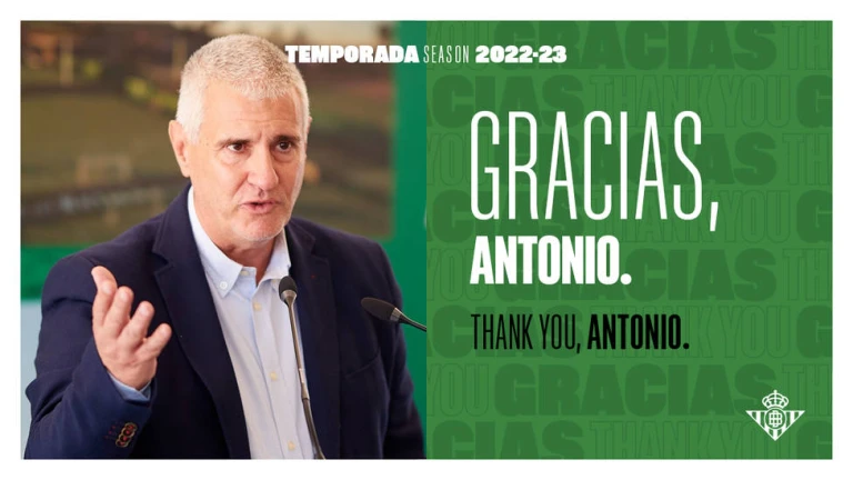 El director deportivo extremeño ha oficializado este lunes su salida de la entidad verdiblanca, a la que llegó en el verano de 2020, después de que la pasada semana se conociera su intención de hacer valer una cláusula de su contrato de cuatro años que le permitía salir al final del tercero.