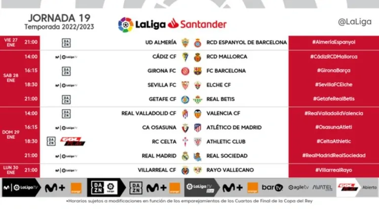 PROGRAMA DE LA JORNADA 19 DE LALIGA SANTANDER: