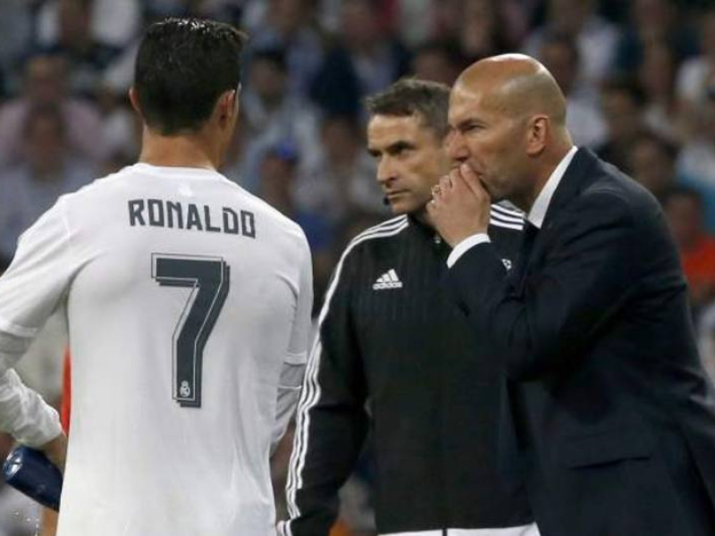 Cristiano Ronaldo y Zinedine Zidane, durante un encuentro con el Real Madrid