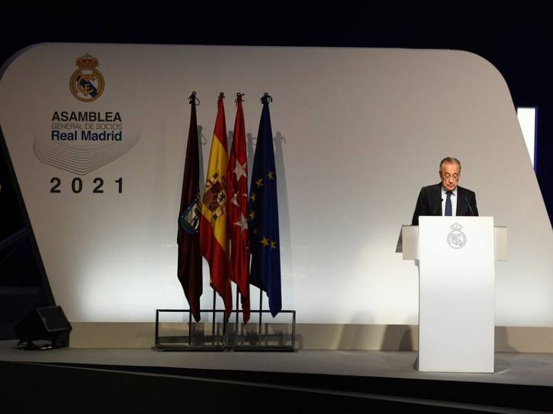 El informe del presidente abrió la Asamblea con 481 socios compromisarios presenciales y 1.123 por vía telemática, y se dejó para el final los temas más calientes. El máximo dirigente del club blanco trató la Superliga europea, lo ocurrido los últimos meses y los ataques de la UEFA que quedan sin efecto en los tribunales.