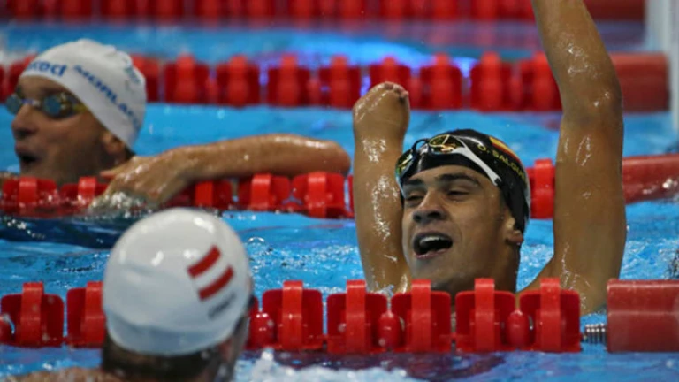 España vivió este miércoles en el Centro Acuático del Parque Olímpico de Río de Janeiro un auténtico baño de medallas con tres oros (Oscar Salguero Galisteo, Michelle Alonso e Israel Oliver), una plata (Miguel Luque) y un bronce (María Delgado) en natación. La primera medalla de la jornada la ganó Oscar Salguero Galisteo, nadador catalán que compite en la clase SB8 de discapacitados físicos y que logró el oro en los 100 metros braza. Salguero Galisteo, que compite sin parte del brazo derecho, realizó a sus 18 años una carrera perfecta de nado que dominó de principio a fin como primero para parar el cronómetro en 1:11.11. Segundo fue el italiano Federico Morlacchi, con un tiempo de 1:12.68 y tercero el austríaco Andreas Onea con 1:14.44. Minutos después, la nadadora canaria Michelle Alonso, que compite en la clase SB14 de discapacitados intelectuales, se colgó otro oro en los 100 metros braza y se quedó a una centésima de batir el récord mundial de la distancia, que está en posesión suya. Michelle Alonso, plusmarquista mundial de la distancia con 1:12.61 y entrenada por José Luis Guadalupe, se impuso en la piscina del Centro Acuático de Río de Janeiro con un tiempo de 1:12.62, por delante de la británica Bethany Firth (1:12.89) y la holandesa Magda Toeters (1:17.35). La colección de medallas para España se amplió con el bronce de la nadadora aragonesa María Delgado, que compite en la categoría S12 de discapacitados visuales. Delgado, de 18 años, quedó tercera en la final de los 100 metros espalda con un tiempo que fue récord de España (1:12.73). Por delante acabaron la británica Hannah Russell, que ganó el oro con récord del mundo (1:06.06), y la ucraniana Yarina Matlo, que fue plata. Sin casi respiro para digerir tanta medalla, el nadador madrileño Israel Oliver, en la categoría S11 de discapacitados visuales, logró el oro en la prueba de los 100 metros mariposa. Israel Oliver, que disputa sus cuartos Juegos Paralímpicos a los 28 años, logró el triunfo con un tiempo de 1:02.24, por delante del japonés Keiichi Kimura, que fue plata, y del ucraniano Oleksandr Mashchenko, que consiguió el bronce. En esa prueba, el récord mundial de los 100 metros mariposa S11 lo tiene otro español, Enhamed Enhamed, que ganó el oro en esta categoría en los Juegos de Pekín 2008. El colofón a la jornada lo puso el nadador catalán Miguel Luque con la medalla de plata en los 50 metros braza, categoría SB3 para discapacitados físicos. Luque, que disputa en Río sus quintos Juegos Paralímpicos, logró la plata con un tiempo de 49.47, a casi dos segundos del chino Jin Zhipeng, que fue oro con récord mundial. El italiano Efrem Morelli, con 49.92, obtuvo el bronce.