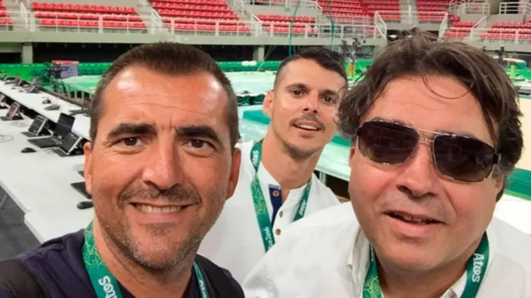 Xuancar, Germán Dobarro e Isaac Fouto ya están en el escenario donde tendrá lugar las competiciones de gimnasia.