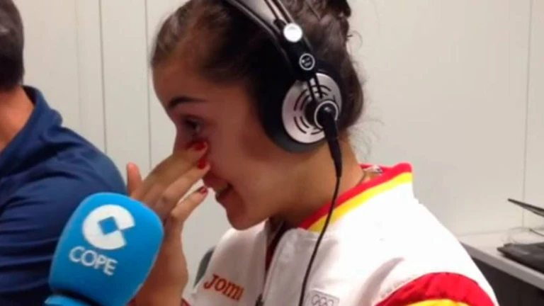 Las lágrimas de Carolina Marín en el 'módulo COPE' con su abuela María