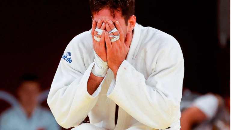 Nikoloz Sherazadishvili no pudo más. El judoca rompió a llorar cuando cayó eliminado en la repesca frente al uzbeko Davlat Bobonov en la categoría de -90 kg en los Juegos Olímpicos de Tokio.