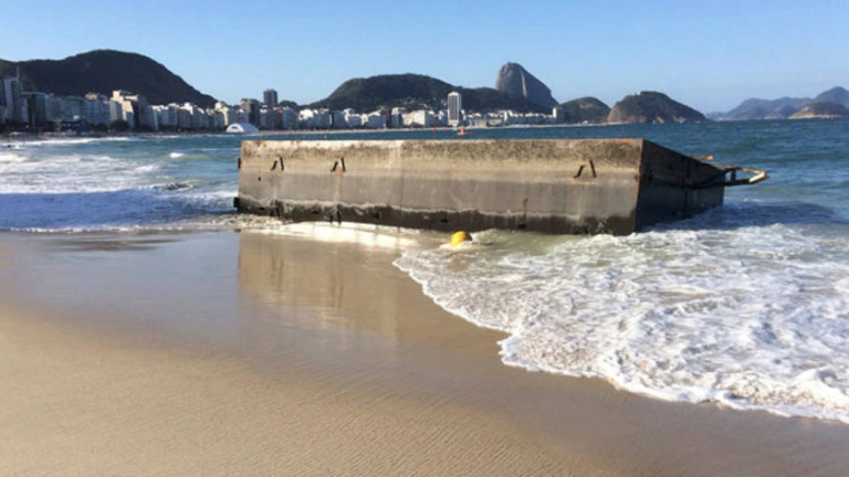 La plataforma de salida apareció varada en la playa de Copacabana. Reuters.