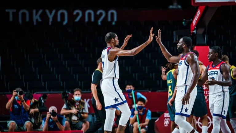 Una vez los americanos se recompusieron y ya no hubo partido. Kevin Durant volvió a ser el espíritu de esta selección (23 puntos, 9 rebotes), Devin Booker sus piernas para correr a campo abierto (20) y Jrue Holiday sus manos para recuperar el tono defensivo perdido en la primera mitad (11 puntos, 8 rebotes y 8 asistencias). De nuevo, el conjunto australiano se queda en la orilla.